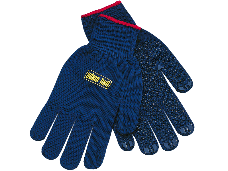 Rukavice za putnike. Čvrsti plavi pamuk, s PVC radnom površinom otpornom na klizanje. Veličina: 10. Crveni prsten u boji