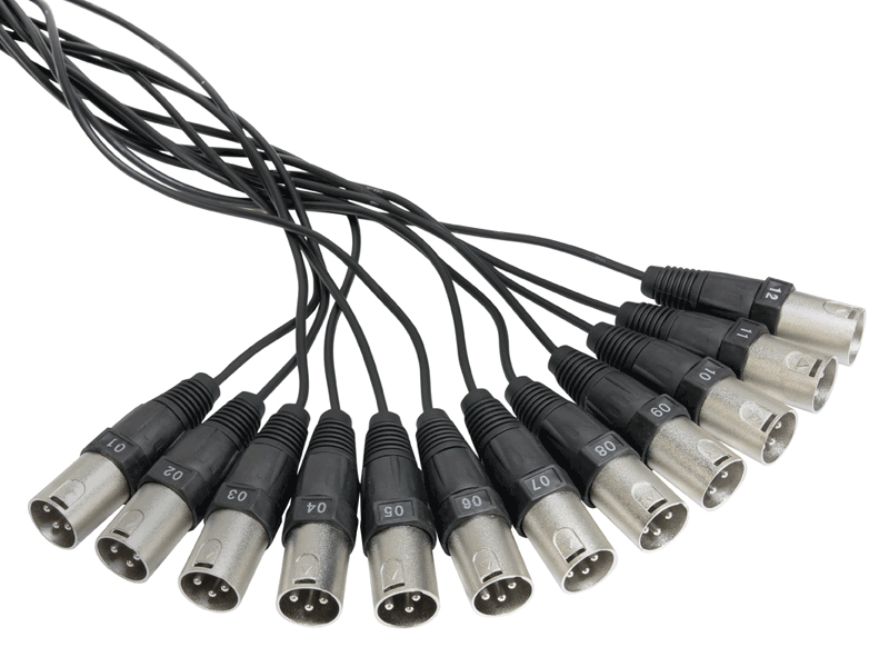 Twelve-channel subcore with permanently attached ten-metre cable terminating in twelve Adam Hall XLR plugs.