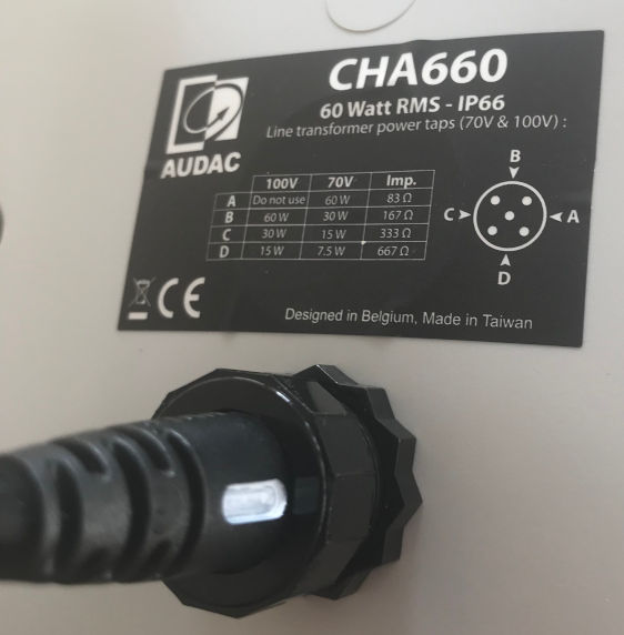 1: 83 Ω – 100 V / Not used – 70 V / 60 W