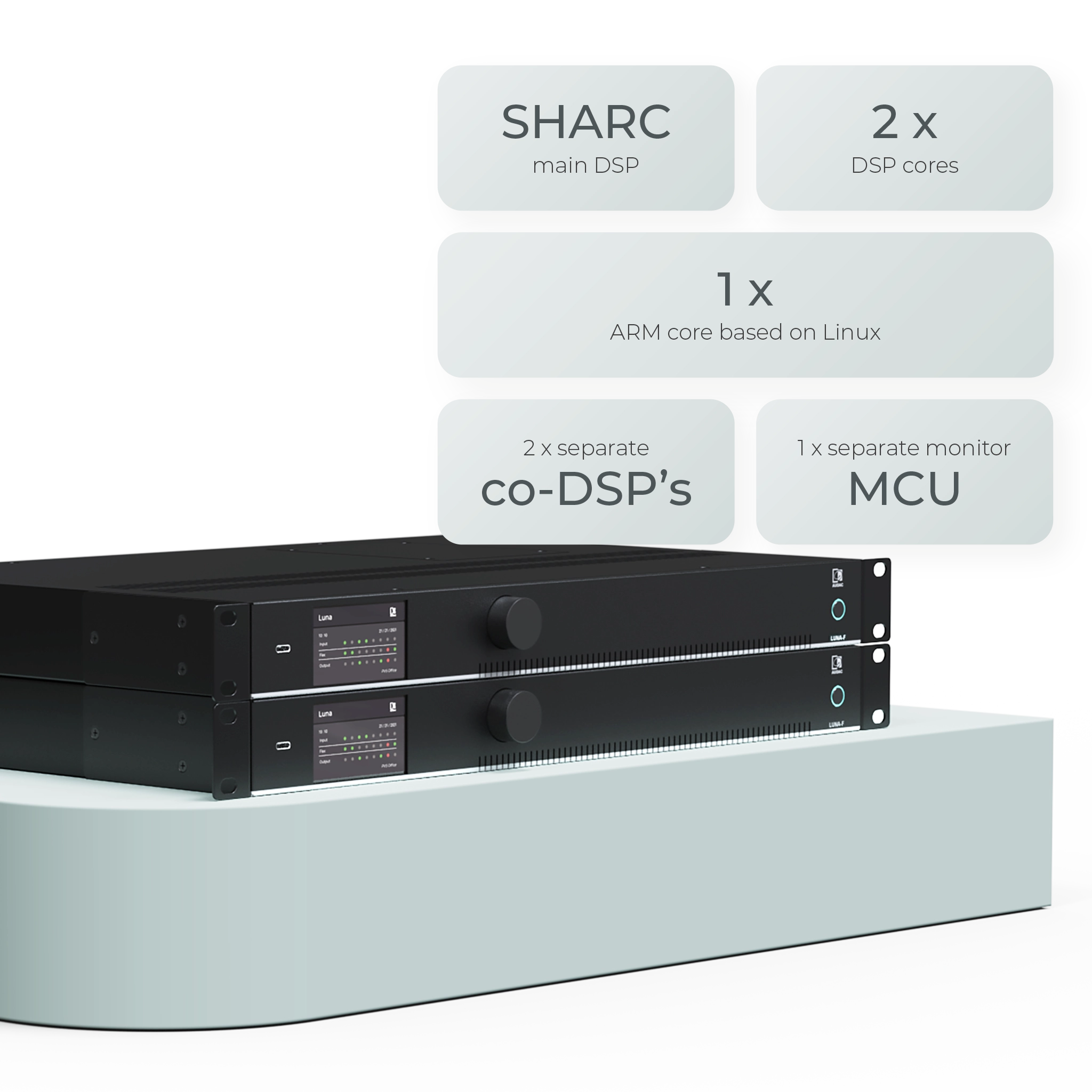 DSP Processor: Dual core SHARC, ARM Linux core. 2 Dedicated co-DSP