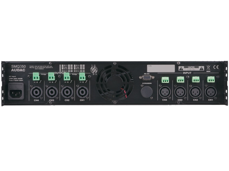 SMQ350 je četverokanalno pojačalo snage klase D s izlaznom snagom od 350 W za svaki kanal. WaveDynamics™ DSP procesor u kombinaciji s 2,5-inčnim LCD zaslonom pruža neusporedivo korisničko iskustvo s intuitivnim pregledom funkcija za jednostavnu konfiguraciju.