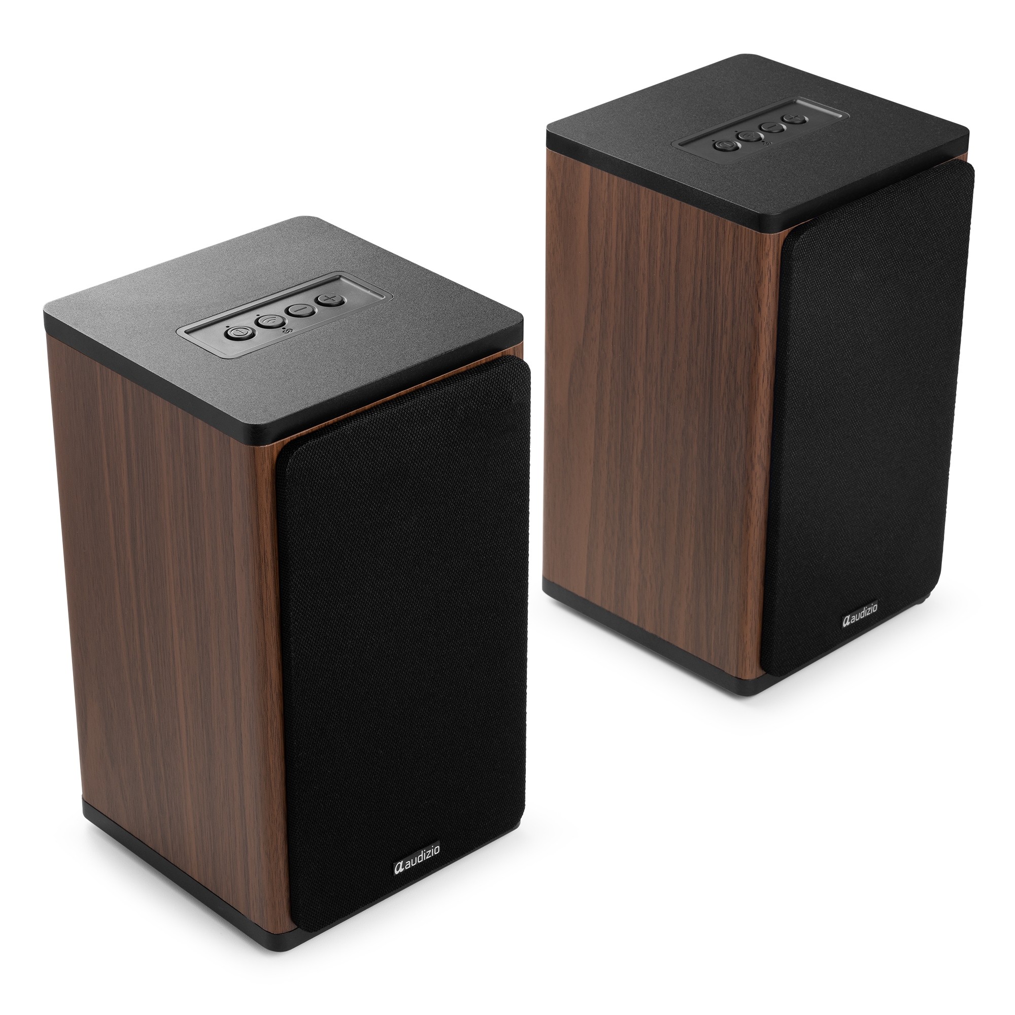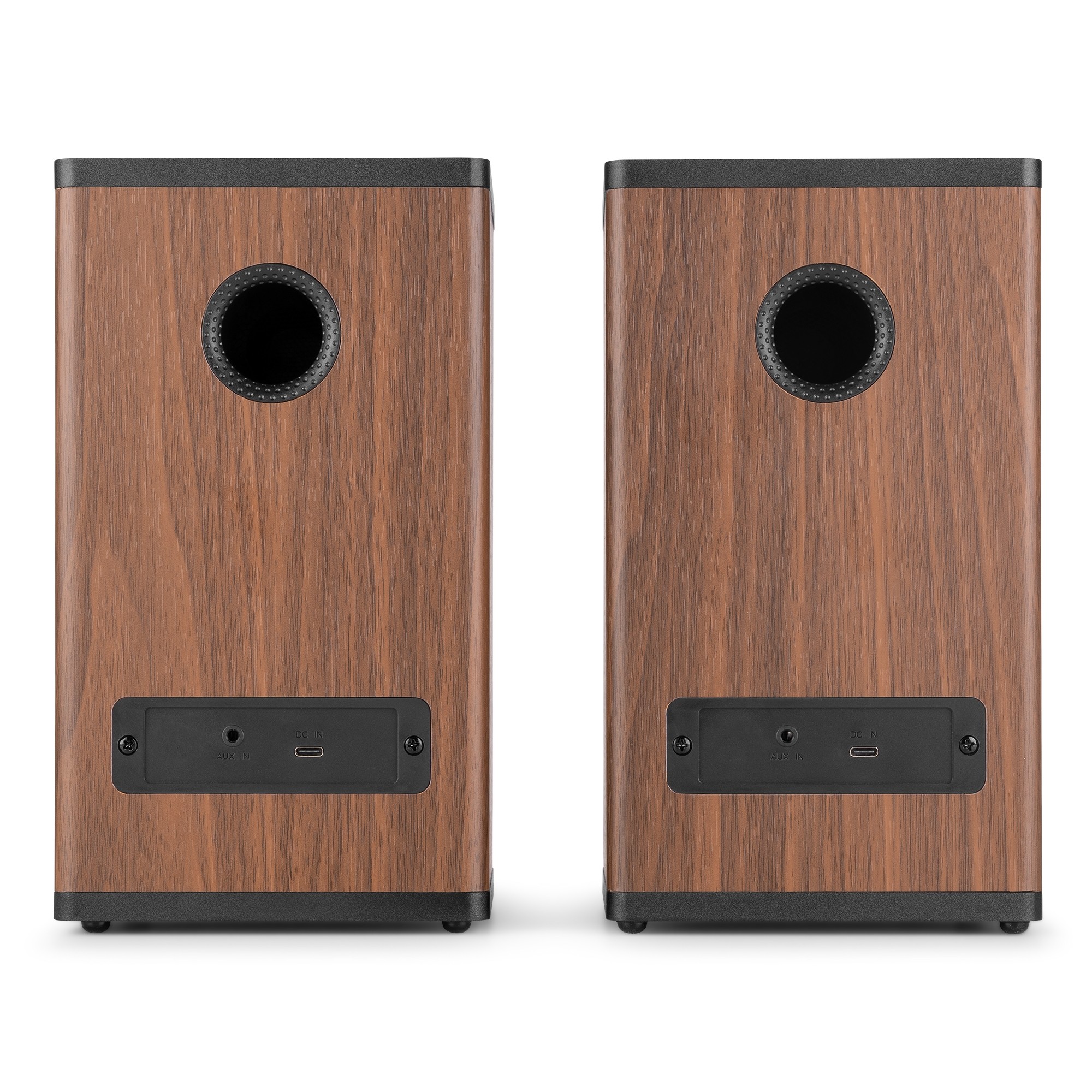 Aktivni set zvučnika za policu s baterijom, tamno drvo
