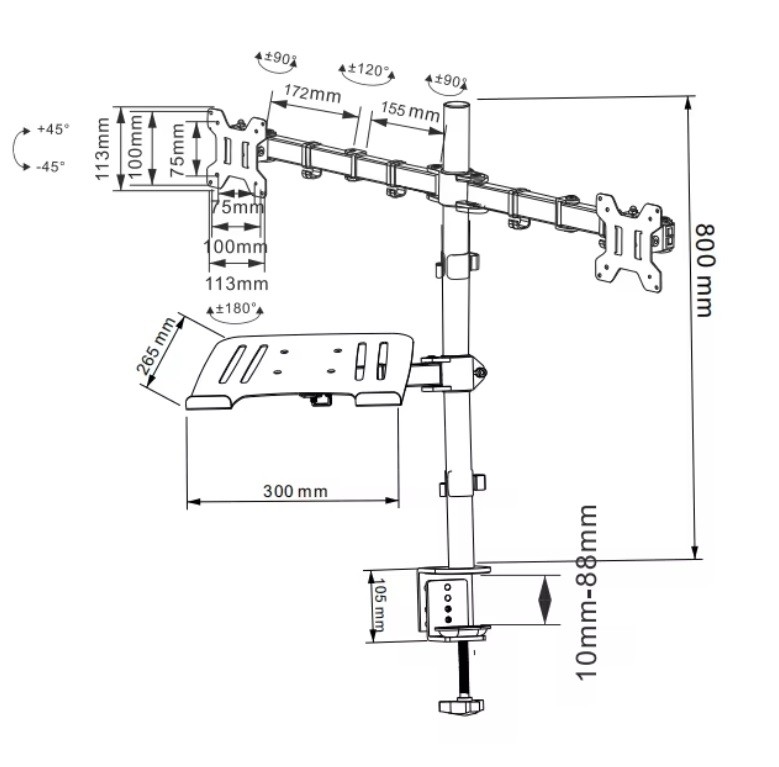 Dvostruki nosač za monitor 13” – 32” s postoljem za prijenosno računalo