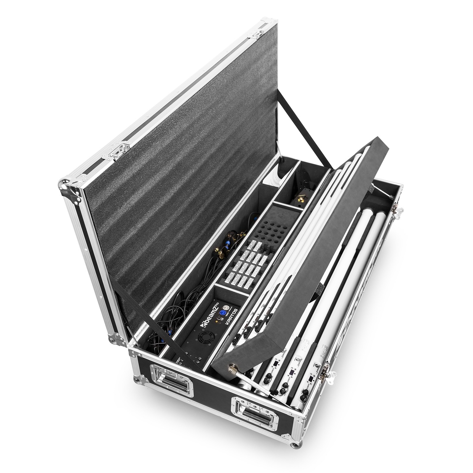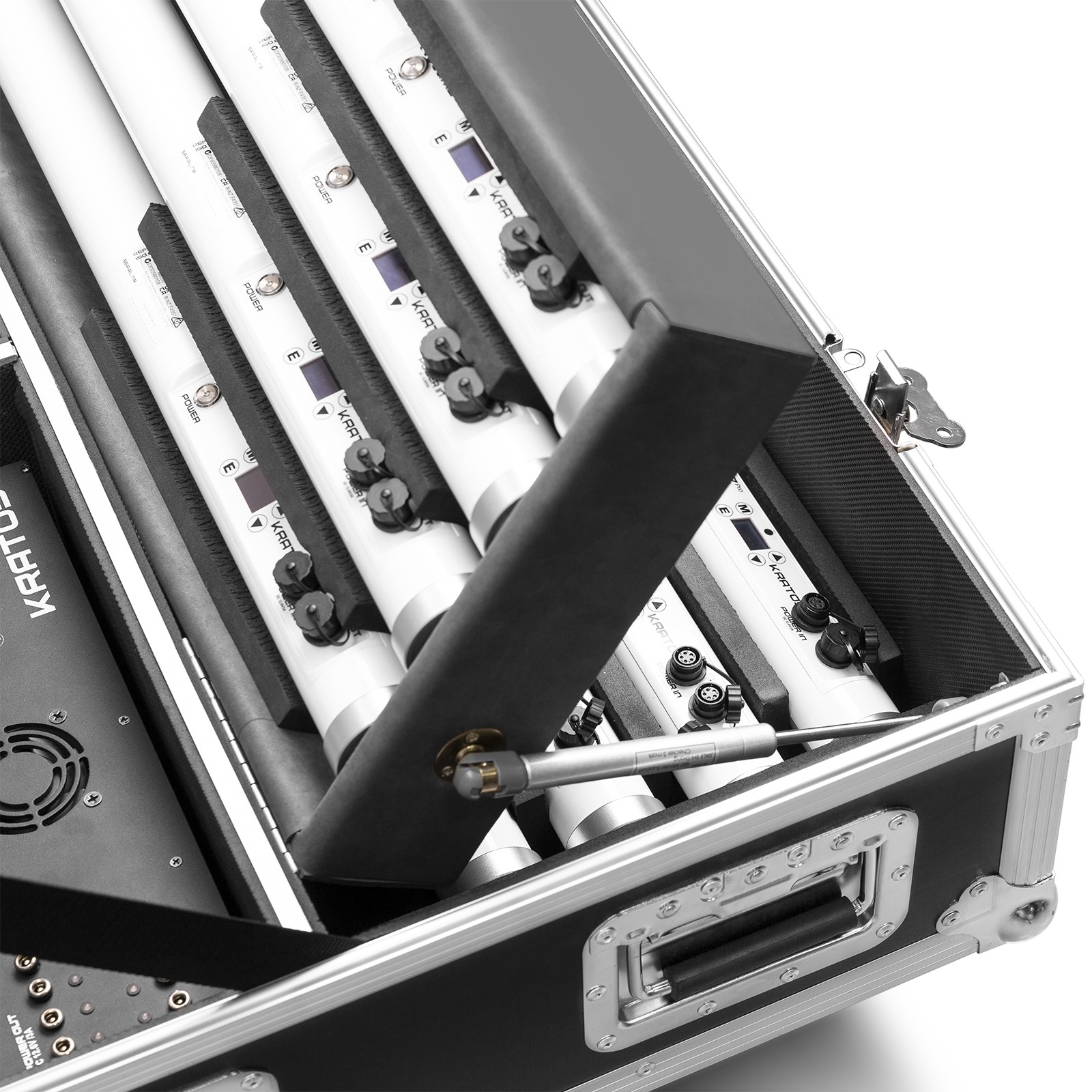 Kratos Tube Kit dolazi s osam Kratos cijevi i svim bitnim priborom koji vam je potreban za vaše sljedeće snimanje ili događaj, u zatvorenom ili na otvorenom. Sve se to sprema u izdržljivu, zaštitnu kutiju za let koja je opremljena kotačima i ručkama za jednostavan transport.