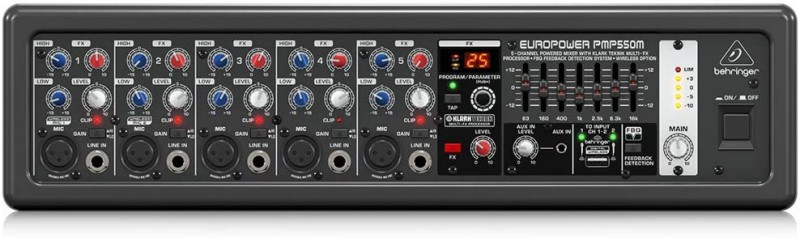 500-vatni 5-kanalni aktivni mikser s Klark Teknik multi-FX procesorom, FBQ sustavom za detekciju povratne veze i bežičnom opcijom Ultra-kompaktni aktivni mikser od 500 W Revolucionarna tehnologija pojačala klase D: ogromna snaga, nevjerojatne zvučne performanse i super mala težina Ultra-kvalitetni KLARK TEKNIK FX procesor s 25 preseta, uključujući reverb, chorus, flanger, delay, pitch shifter i razne multi-efekte Revolucionarni FBQ sustav za detekciju povratne veze trenutačno otkriva kritične frekvencije za jednostavno uklanjanje povratne veze “Bežično spreman” za visokokvalitetni BEHRINGER digitalni bežični sustav (nije uključen)