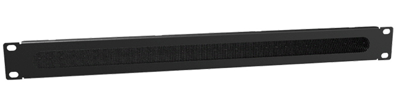 BSB01 is a 19” blind panel with brush strip which can be installed in any 19” enclosure providing an inlet through which any cable can pass without having any openings or holes in the enclosure. The brush will bend nicely around the passing cable, preventing any unwanted dust or dirt from entering the cabinet. The brush hole with dimensions 25 x 430 mm allows XLR sized connectors passing through. It is made of 1.2 mm thick steel, finished with a black (RAL 9004) structured powder coating.
