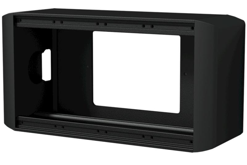 The aluminum construction features pre-threaded hole inserts allowing module installation with a maximum of 4 units with a built-in depth up to 60 mm. It can be mounted on any wall or surface, while cable entry is possible through large access holes on the rear side. The sides are constructed out of ABS material with break-out points allowing cable entry through a duct or gland. Modules can be fixed inside the unit using the included M3 screws. The overall construction is finished in a black (RAL9004) structured and scratch resistant powder coating.