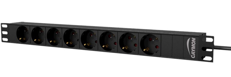 CAYMON PSR108G – 19″ razvodna jedinica za napajanje – 8 x njemačka utičnica 8 x njemačka (tip F – CEE7/4) utičnica Muški Schuko (CEE 7/7) ulazni priključak Crno aluminijsko kućište Kabel od 1,8 metara Priključak za uzemljenje kućišta 16A ~ 250 VAC / 4000 W maks. Rotirajuće 19″ montažne uši