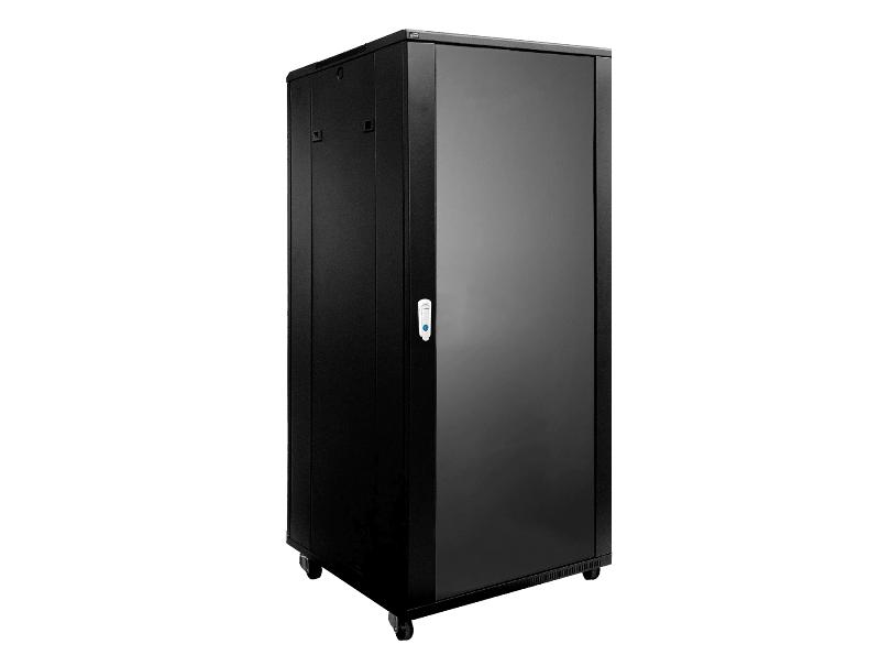 Pohranjuje do 27 jedinica opreme od 19″ Standardna brava za oba vrata Integrirana ventilacijska rešetka na vrhu Kotači od 50 mm + nožice za niveliranje uključene Uklonjive stranice za jednostavnu ugradnju i ožičenje Izbušeni kvadratni otvori za korištenje s usadnim maticama Vrata od kaljenog stakla s bravom Podesivi profili od 19″ sprijeda i straga po dubini (maks. 540 mm) Mogućnost promjene položaja vrata