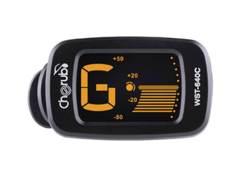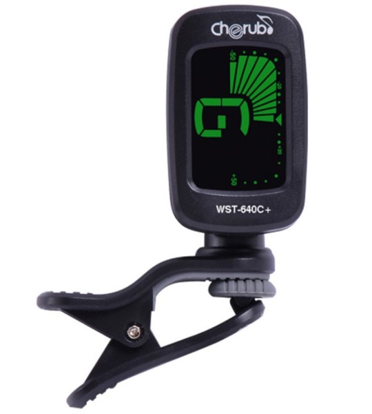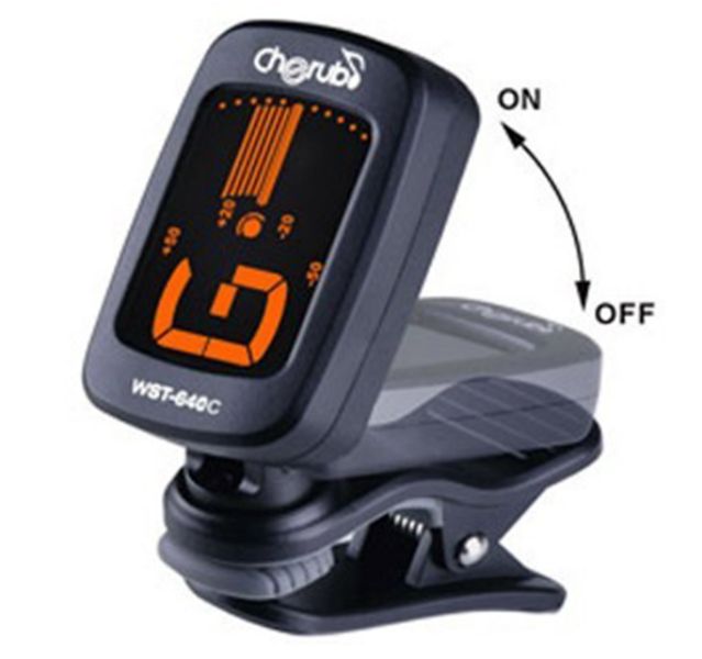 Revolucionarni kromatski ugađač s kopčom, bez tipki! Jednostavno pomaknite ugađač prema gore za uključivanje i pritisnite dolje za isključivanje. LCD zaslon s 3 boje i pozadinskim osvjetljenjem – žuta, ravna; zelena, usklađena; crvena, oštra. Ugrađeni piezo senzor za precizno ugađanje. Automatski raspon ugađanja od A0 do C8. Radi na CR2032 bateriju, automatsko isključivanje.
