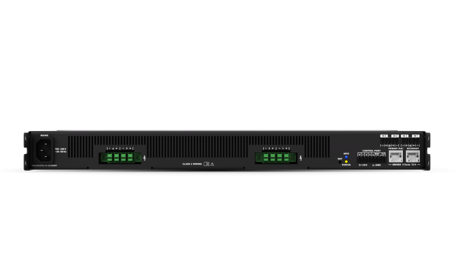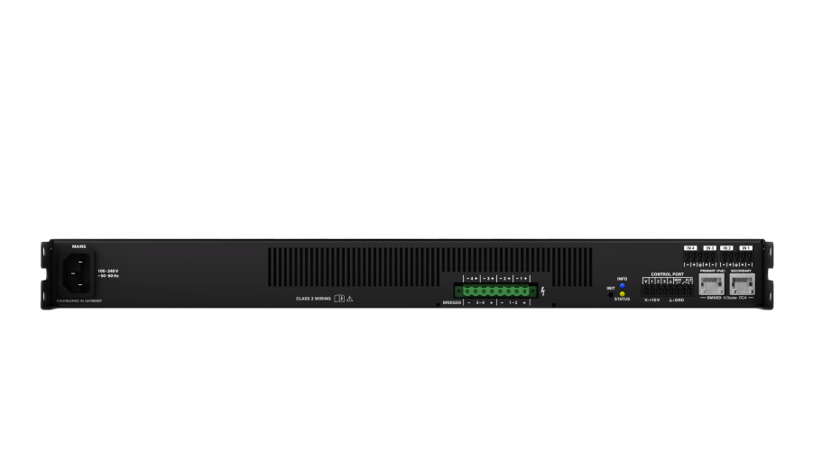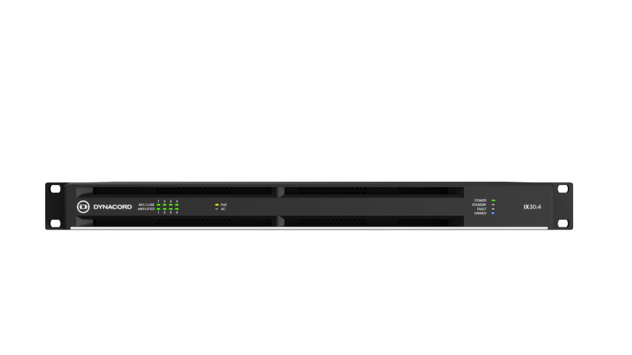 IX30:4 – 4-channel DSP networked amplifier, 3kW powerTANK, 4×4 Dante, OCA, 4 mic/line inputs