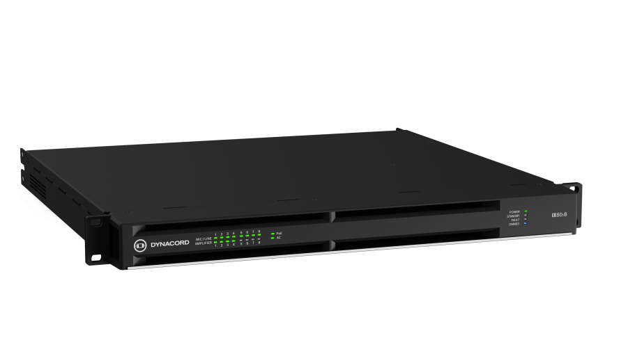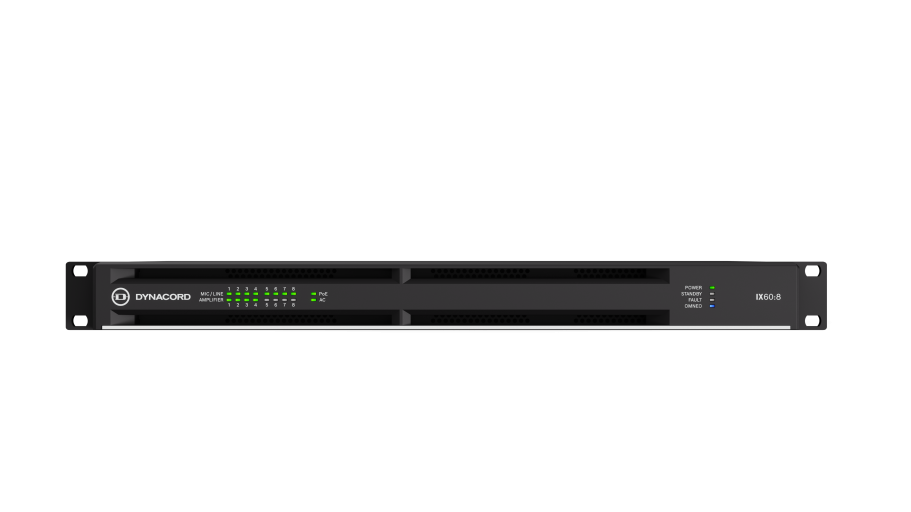 IX60:8 – 8-channel DSP networked amplifier, 6kW powerTANK, 8×8 Dante, OCA, 8 mic/line inputs