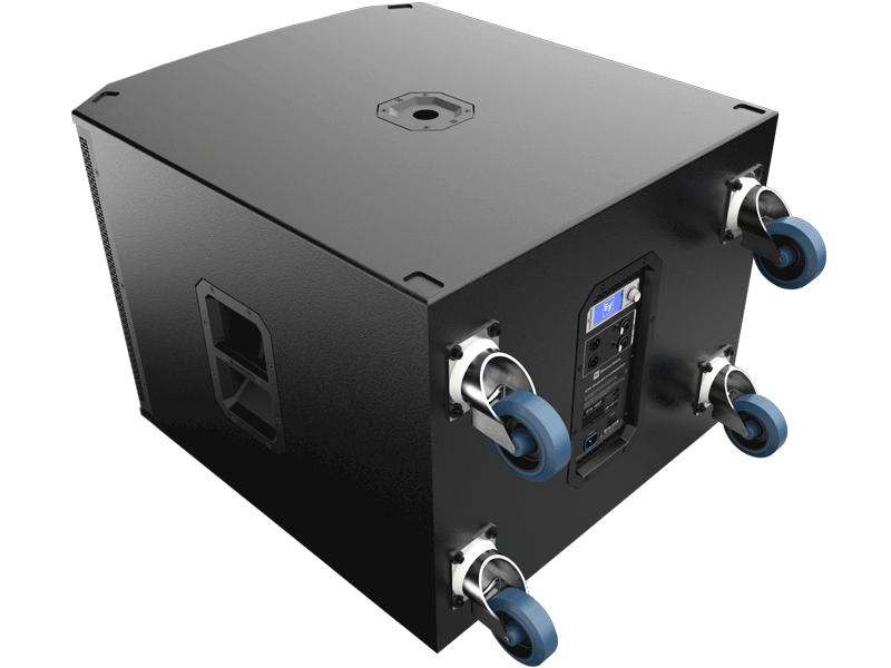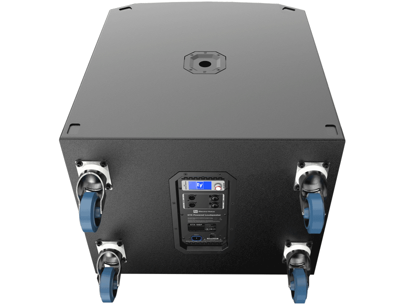 18-inčni DVX woofer za prošireni niskofrekventni odziv. Pojačalo snage klase D od 1800 W s integriranim FIR-Drive DSP-om. Vršni SPL od 135 dB. Posebna DSP postavka za istinske kardioidne performanse u cijelom radnom pojasu. Kombinirana kapica za pol (umetnuta i navojna) za korištenje s ETX dvosmjernim modelima zvučnika s napajanjem. Uklonjivi kotačići