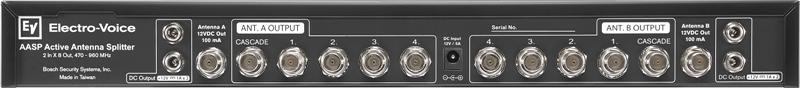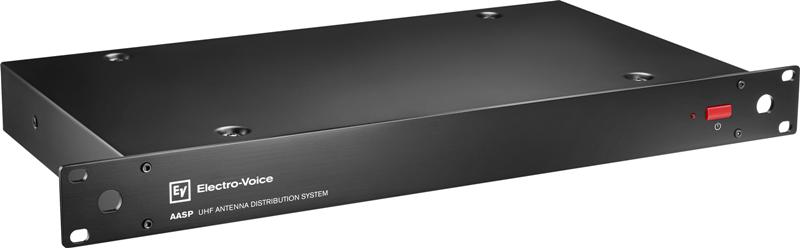 Electro Voice RE3-ACC-AASP – Antenski razdjelnik s 2 ulaza x 8 izlaza 470-960 MHz Aktivni antenski razdjelnik s 2 ulaza x 8 izlaza Distribuira istosmjernu struju za napajanje četiri prijemnika Dijeli dvije antene na četiri diverzitna prijemnika Odabir pojačivača za napajanje aktivnih antena i pojačivača Dodatni kaskadni izlaz po anteni omogućuje slaganje razdjelnika bez žrtvovanja funkcije 2×8