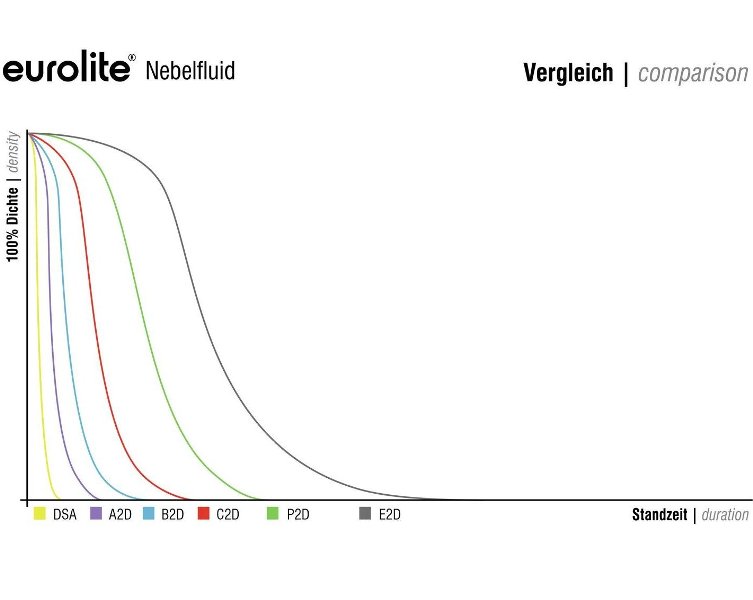 Iznimno dugotrajan učinak magle s visokom gustoćom Spremna tekućina za maglu za strojeve za maglu Preporučena uporaba: velike prostorije, male otvorene pozornice, ispitivanja nepropusnosti u zgradama Na bazi vode Bez mirisa Sastav bez glicerina i DEG-a Netoksično