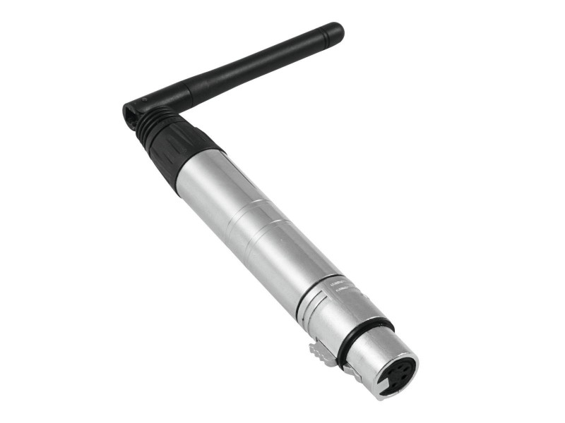 Minijaturni bežični DMX prijemnik za bežični prijenos do 512 DMX kanala. Jednostavan 5-pinski XLR priključak (ženski) s okretnom antenom. Bežični DMX eliminira opsežno ožičenje između DMX kontrolera i DMX kontroliranih jedinica u rasvjetnim instalacijama.