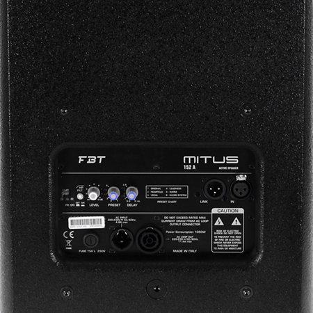 Control panel with XLR input and link, volume, presets, HP filter, ground-lift