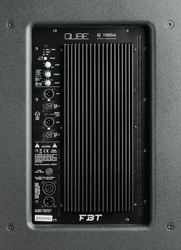 18″ woofer sa 4″ zvučnom zavojnicom, pojačalo snage klase D snage 1200 W RMS s prekidačem za napajanje, DSP sa 6 unaprijed postavljenih postavki, digitalna 6-stupanjska kontrolna ploča s: 3 LED indikatora statusa, faza, razina, unaprijed postavljene postavke, kašnjenje, stereo XLR ulaz/veza, napajanje s powerCON TRUE1 kabelom, dupleks s ulazom i izlazom, kućište od baltičke brezove šperploče od 0,70″ s bojom otpornom na ogrebotine, 2 M20 priključka za stalak zvučnika, 4 aluminijske ručke za nošenje, opcionalni kotači.