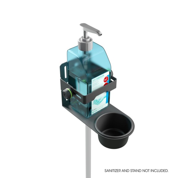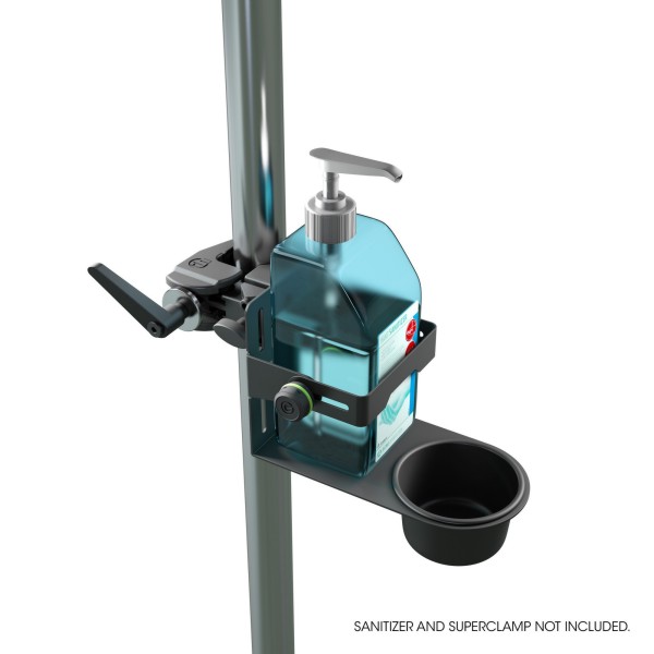Univerzalni držač dezinficijensa sa stezaljkom (idealan za boce s pumpicom od 500 ml) Rupe za montažu na stražnjoj ploči za izravno pričvršćivanje na zid Odgovara svakom tronošcu i okrugloj podlozi Stalak za mikrofon Neograničene mogućnosti montaže (konstrukcija, skela, ograda) zbog kompatibilnosti s npr. Adam Hall SCP710 Superclamp univerzalnom stezaljkom za montažu