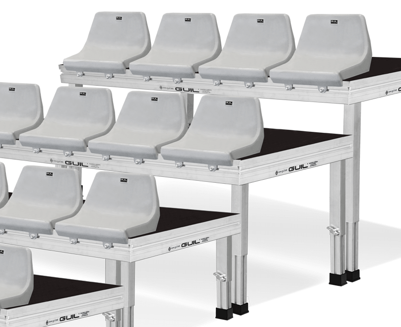 This practical accessory allows you to quickly and easily convert your GUIL platforms into a grandstand or tiered seating, for both indoor and outdoor use.