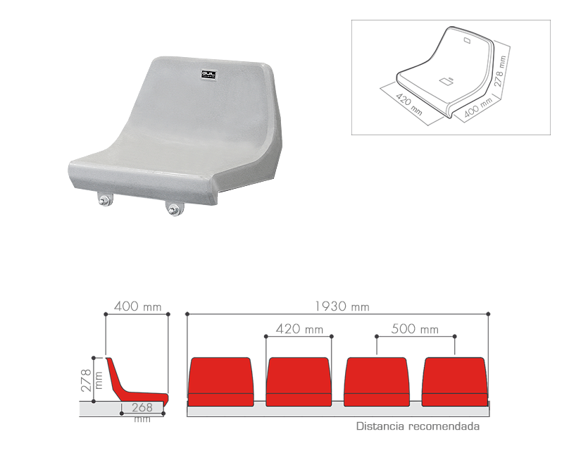 Seat with high back to convert any GUIL platform into a grandstand or tiered seating. This practical accessory gives maximum functionality to your platforms, as with our seats, your platforms can also be used as tiered seating platforms for sport venues, parades, entertainment venues, saving saving on costs and storage space.