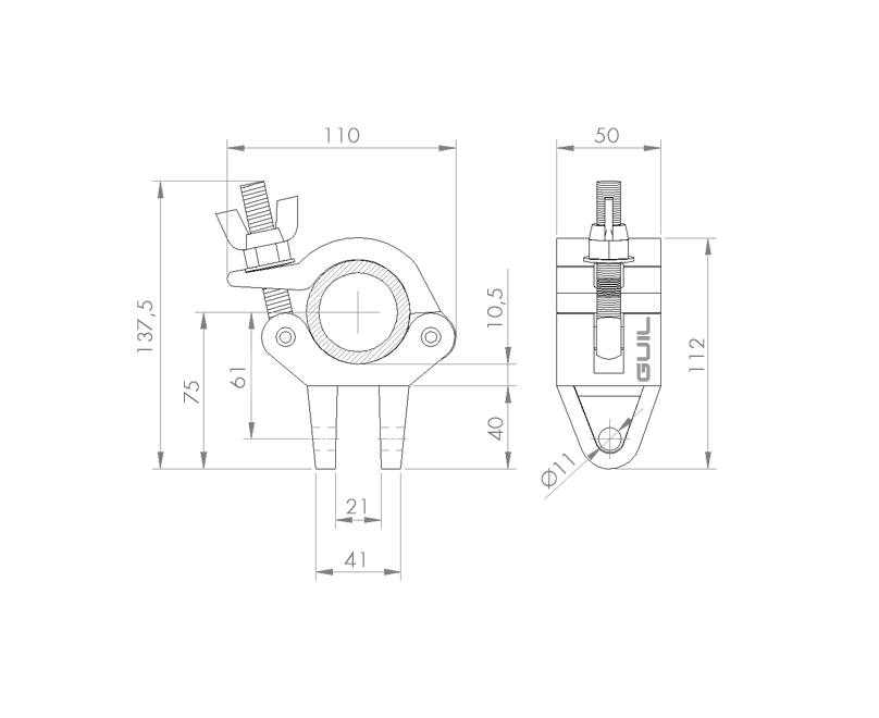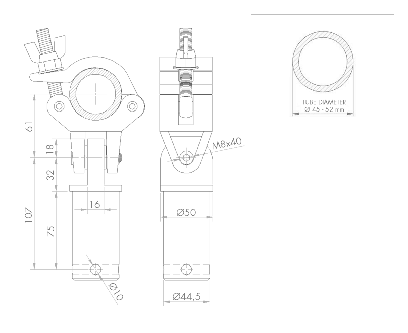 The coupler is designed to be used on tubes with an external diameter from 45 to 52 mm. It has a double blocking system with nut and wing nut.