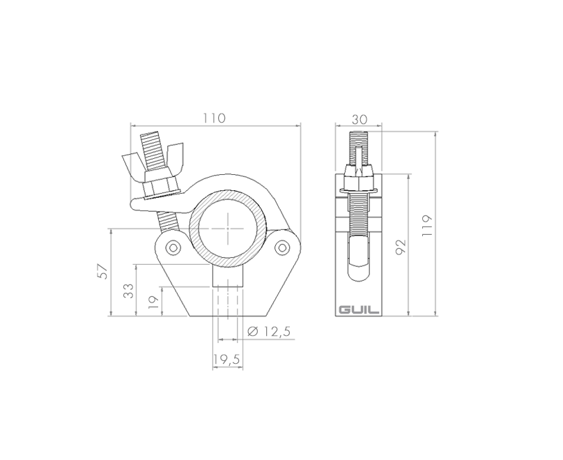 Double blocking system with nut and wing nut which makes it the right coupler to the most demanding set-ups like in events, theatres, live shows, etc. where the most stringent safety requirements must be met.