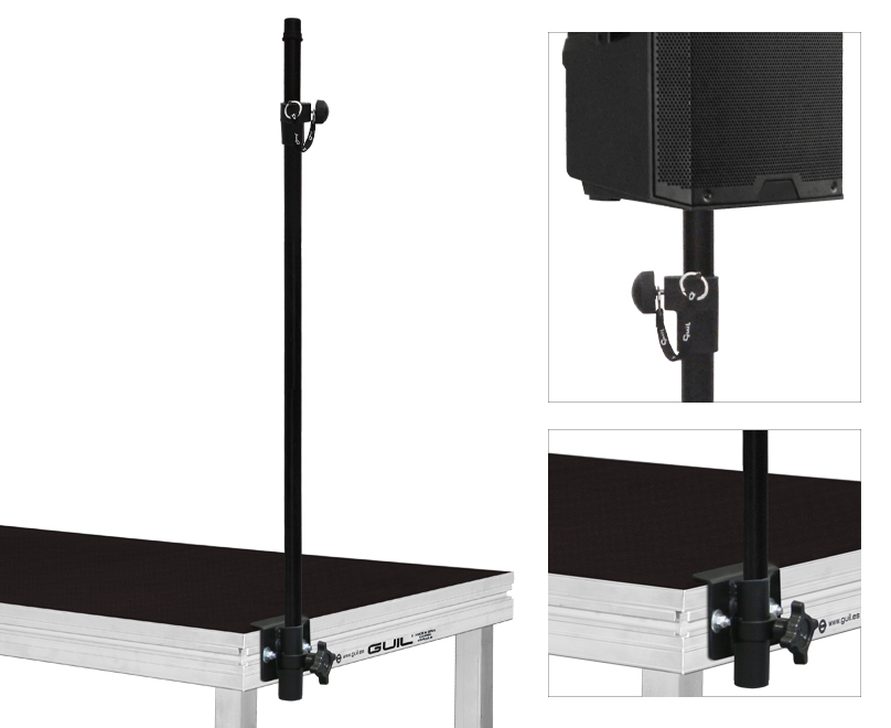 Telescopic speaker stand (type ref. alt-34 – without legs-) with connector to fasten it to the frame of our platforms.