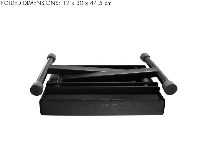 The height of this reinforced keyboard bench is adjustable using a pressure knob and bolt, offering three different positions: 47 cm – 53 cm – 59 cm.