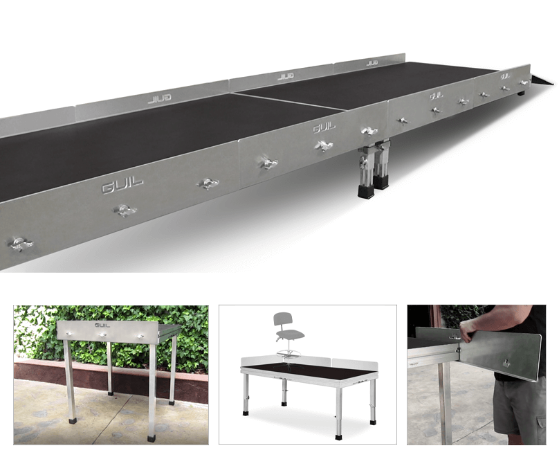 The BTA-01 chair and wheel stop is inserted into our multifunctional deck rail, giving the option to slide it into the required position. They can be fitted to all our platform models and are secured using three fixing points with ergonomic metallic knobs (included), guaranteeing maximum strength.