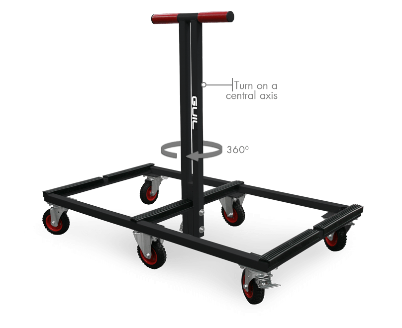 Its 6 wheels (4 swivelling and 2 static) manufactured in solid rubber to avoid scratches or marks on the ground, allow it to turn on a centre axis meaning that it can be turned around in small spaces and giving it an easy manoeuvrability and permits single person use.