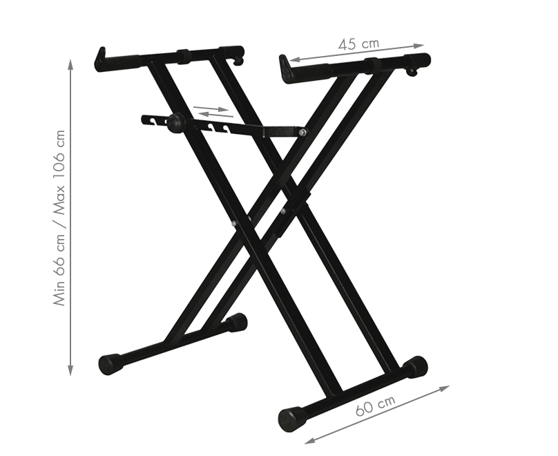Mixing desk stand with double “X” reinforced base that gives it maximum strength and stability. With a load capacity of 80 kg, our MX-435 mixer stand is designed for the most demanding professionals.