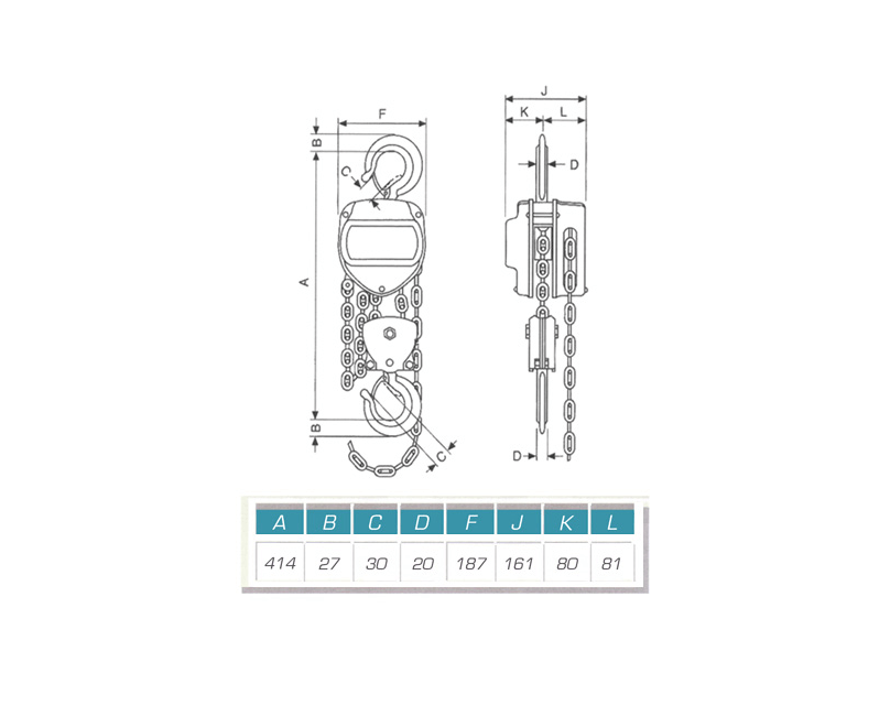 Lančana dizalica. Visina podizanja: 6 m. Nosivost: 2000 kg
