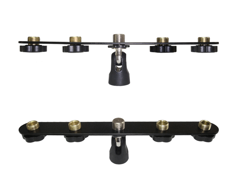 Adaptor arm to attach up to five microphone clamps, and so five microphones onto one stand. Angle adjustable.