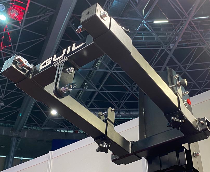 Professional adaptor to fly line array systems with ULK lifting towers with 60 mm forks. This practical adaptor with unique design, prevents the line array from having any twisting or side-to-side swinging movement. Line Array Adaptor Ref. ULK-A4 is secured to the ULK lifting tower using ergonomic knobs.