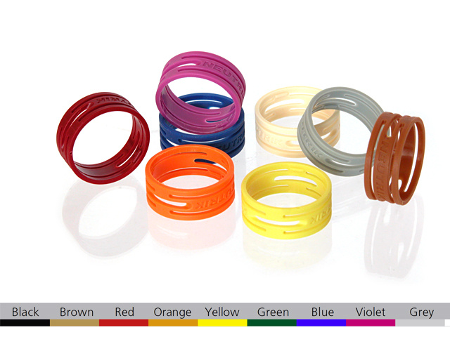 Colored coding rings for XX Series. Insert must not be unsoldered to change the color coding.