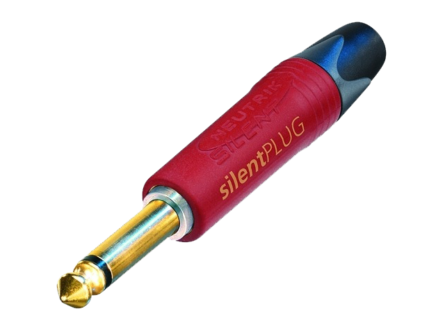 2 pole 1/4″ professional phone plug, gold plated contacts, red rubber overlay, silent switch