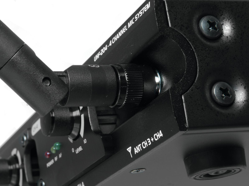 UHF-204 Bežični mikrofonski sustav 863-865MHz. 4-kanalni prijemnik i 4 ručna mikrofona s UHF PLL tehnologijom. Rad u UHF pojasu s niskim stupnjem smetnji (863-865 MHz) s 4 fiksne frekvencije.