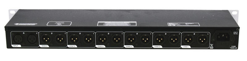 ZD-160 Zonski distributer – Proširuje svaki mikser dodatnim izlazima 1 stereo XLR ulaz 6 stereo zonskih izlaza (XLR) Svaka zona s kontrolom razine i mono prekidačem LED prikaz ulaznog signala i mono/stereo načina rada Ugradnja u rack s 1 U