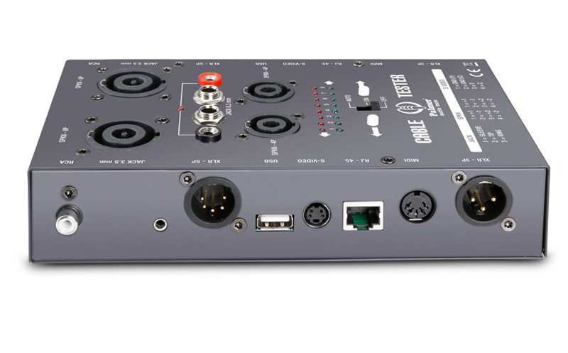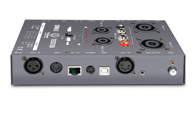 The AHMCTXL V2 can test cables with Speakon 4-pin and 8-pin, XLR 3-pin and 5-pin, 3.5 mm and 6.35 mm TS and TRS, RCA, DIN/MIDI, USB, RJ-45 and S-Video connectors. It includes a pair of probes that enable troubleshooting cables with other types of connectors or the wiring in studios and installations.