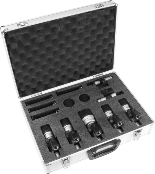 4 P1004 cardioid microphones (50-15,000 Hz) for snare / tom (including “anti-vibration” clamps for direct attachment to the drum).