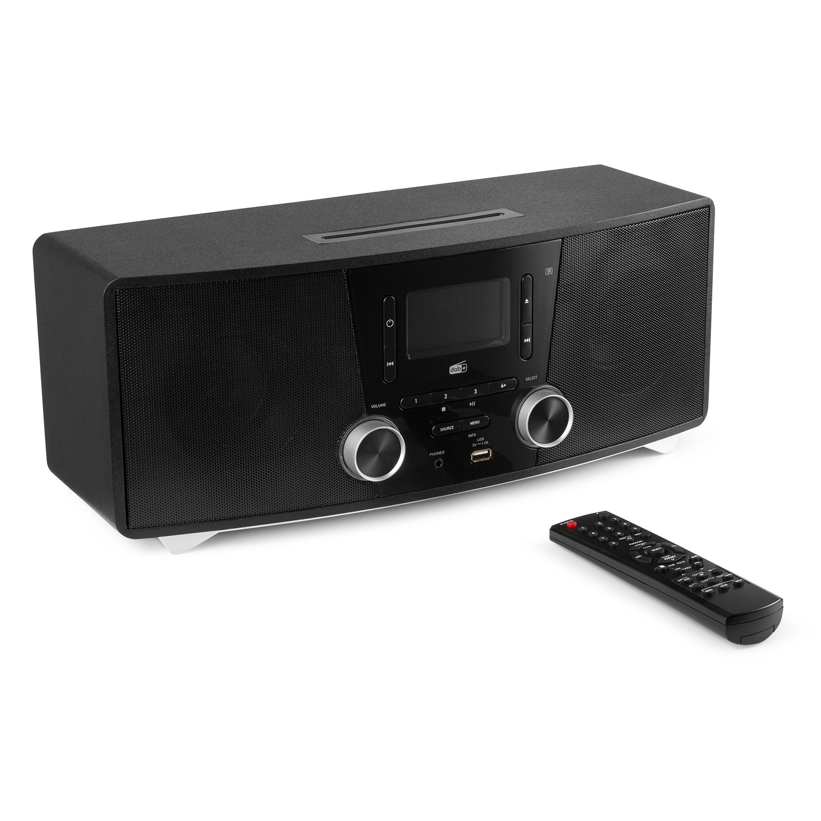 Playback options: BT streaming, CD, DAB+ tuner, FM radio, USB