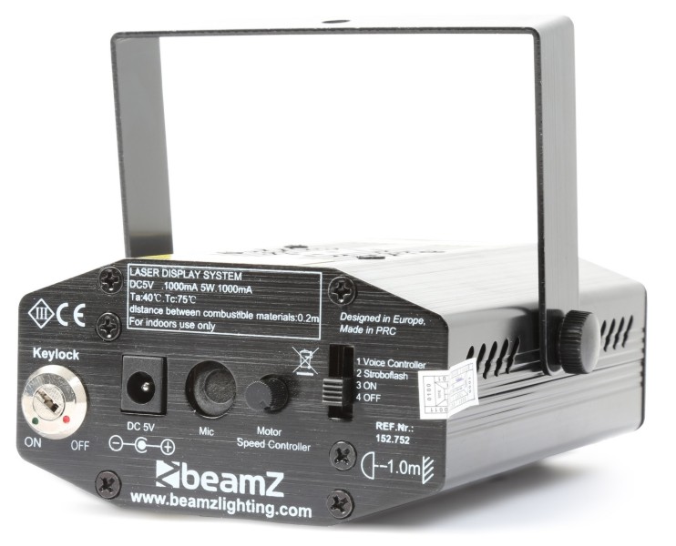 Kompaktni crni mini laser klase 3B koji stvara podesivi efekt zvjezdanog neba u crvenoj i zelenoj boji. Idealan za barove, kod kuće itd. Crveni (120 mW) i zeleni (50 mW) laser Unaprijed programirani prikazi Aktivira se zvukom s podesivom osjetljivošću Automatski način rada s podesivom brzinom