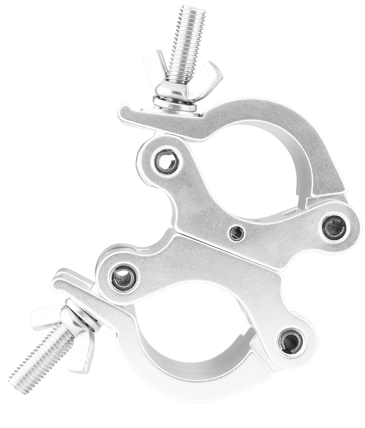 Univerzalna aluminijska tanka okretna spojnica za montažu cijevi i rešetki. Okretna spojnica omogućuje čvrsto pričvršćivanje između susjednih šipki, a istovremeno omogućuje kretanje od 360 stupnjeva. Visokočvrsta aluminijska konstrukcija.
