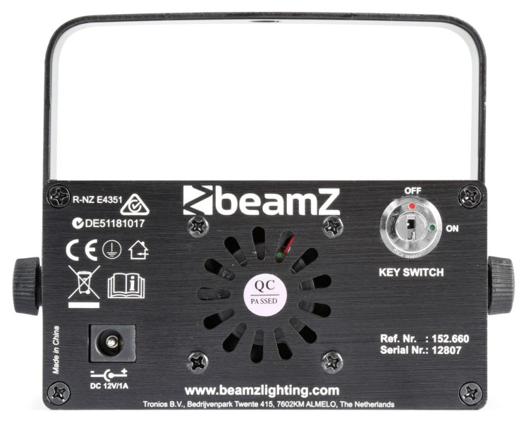 Tronios BEAMZ Bianca Double Laser 330mW RGB Gobo IRC Bianca Double laser je crveni, zeleni i plavi plug and play laser koji stvara 12 različitih gobo efekata. RGB laser uključuje IR daljinski upravljač za bežično upravljanje i prebacivanje između programa aktiviranih zvukom ili automatskih programa. Pogodno za diskoteke, pubove, noćne klubove, obiteljske zabave itd.