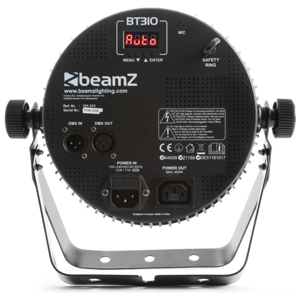 Snažan parket u ABS kućištu s 12 x 6W RGBA (4-u-1) LED dioda. Dizajniran da bude ravan kako bi se mogao uklopiti u vaše konstrukcije i opremljen IEC ulazima/izlazima za lančano povezivanje više jedinica. BT310 ima unaprijed postavljene programe koji se mogu koristiti u samostalnom načinu rada. U DMX postavkama postoji izbor između 4-kanalnog načina rada s unaprijed postavljenim makroima boja ili 8-kanalnog načina rada gdje možete pojedinačno kontrolirati svaku boju. Isto se može učiniti i u samostalnom načinu rada s isporučenim daljinskim upravljačem. ABS kućište i dvostruki stalak čine BT310 idealnim i za iznajmljivanje, jer je lagan i jednostavan za postavljanje.