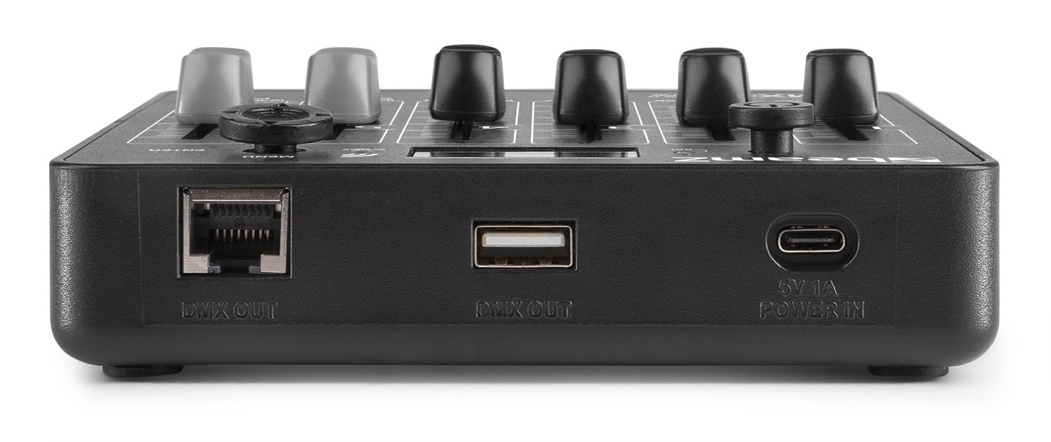 DMX65W mini DMX kontroler je kompaktna jedinica za upravljanje svjetlom, posebno dizajnirana za korištenje s, na primjer, bežičnim BeamZ uplighterima. Bežično možete sinkronizirati neograničen broj W-DMX rasvjetnih tijela istovremeno i upravljati njima pomoću jednostavne navigacije na OLED digitalnom zaslonu. DMX65W kontroler s punjivom baterijom može se koristiti kao prijenosni, ručni uređaj ili montirati na zid za trajnu instalaciju. Isporučuje se u robusnoj plastičnoj torbici za nošenje.