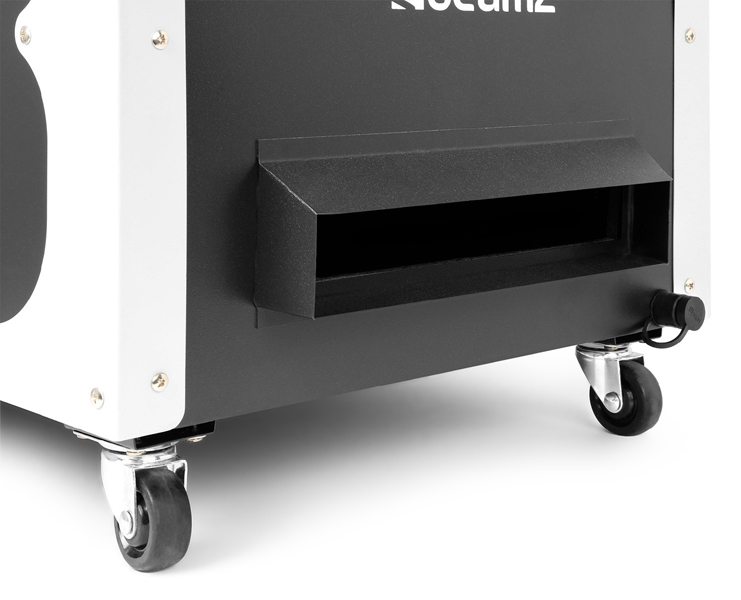 Profesionalni DMX ledeni zamagljivač od 1800 W koji koristi led za hlađenje dima stvarajući gustu maglu koja se širi po podu. Pogodan za razna mjesta, pozornice za nastupe uživo i kazališta. Opremljen visokokvalitetnim grijaćim elementom i velikim spremnikom tekućine. Isporučuje se s daljinskim upravljačem.