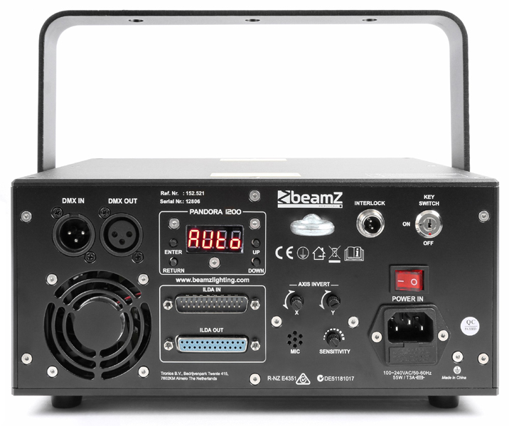 Tronios BeamZ PANDORA 1200 TTL LASER RGB Pandora 1200 ima zajamčenu izlaznu snagu od 1 W i maksimalnu izlaznu snagu od 1,2 W u punoj boji crvene, zelene i plave. Ovaj laserski svjetlo za show pruža TTL modulaciju. To znači da vam omogućuje stvaranje 7 boja u njihovom punom intenzitetu. Kombinirajući tu snagu s preciznim 25K grafičkim skenerima, čime su točnost i oblik snopa izuzetno napredni, ove su jedinice prikladne za visokoprofesionalne primjene. Laserom se može upravljati putem ILDA i DMX ili raditi samostalno u automatskom ili zvučno aktiviranom načinu rada.
