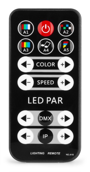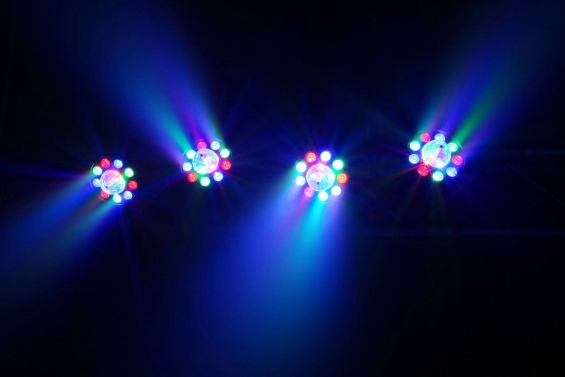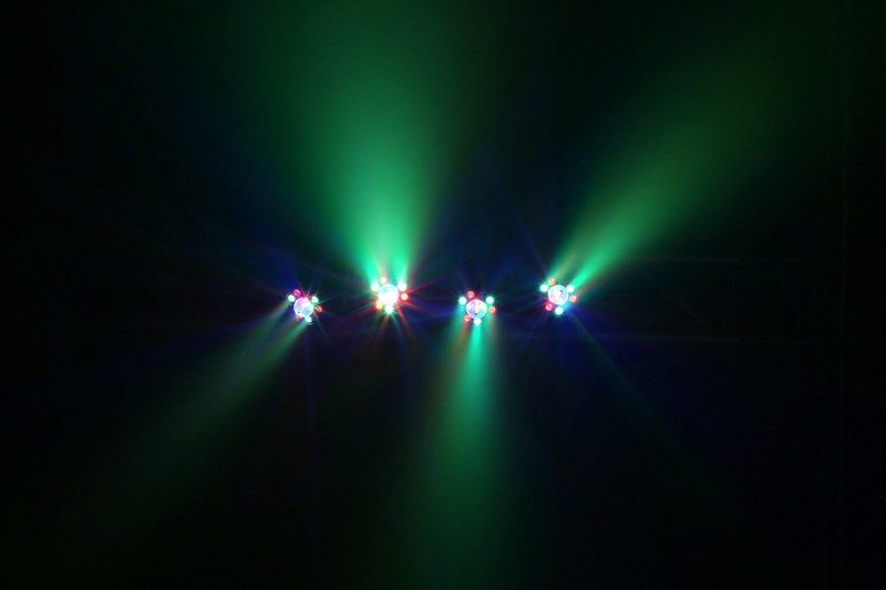 4 PAR cans with 3x 1W Red, 3x 1W Green and 3x 1W Blue LEDs